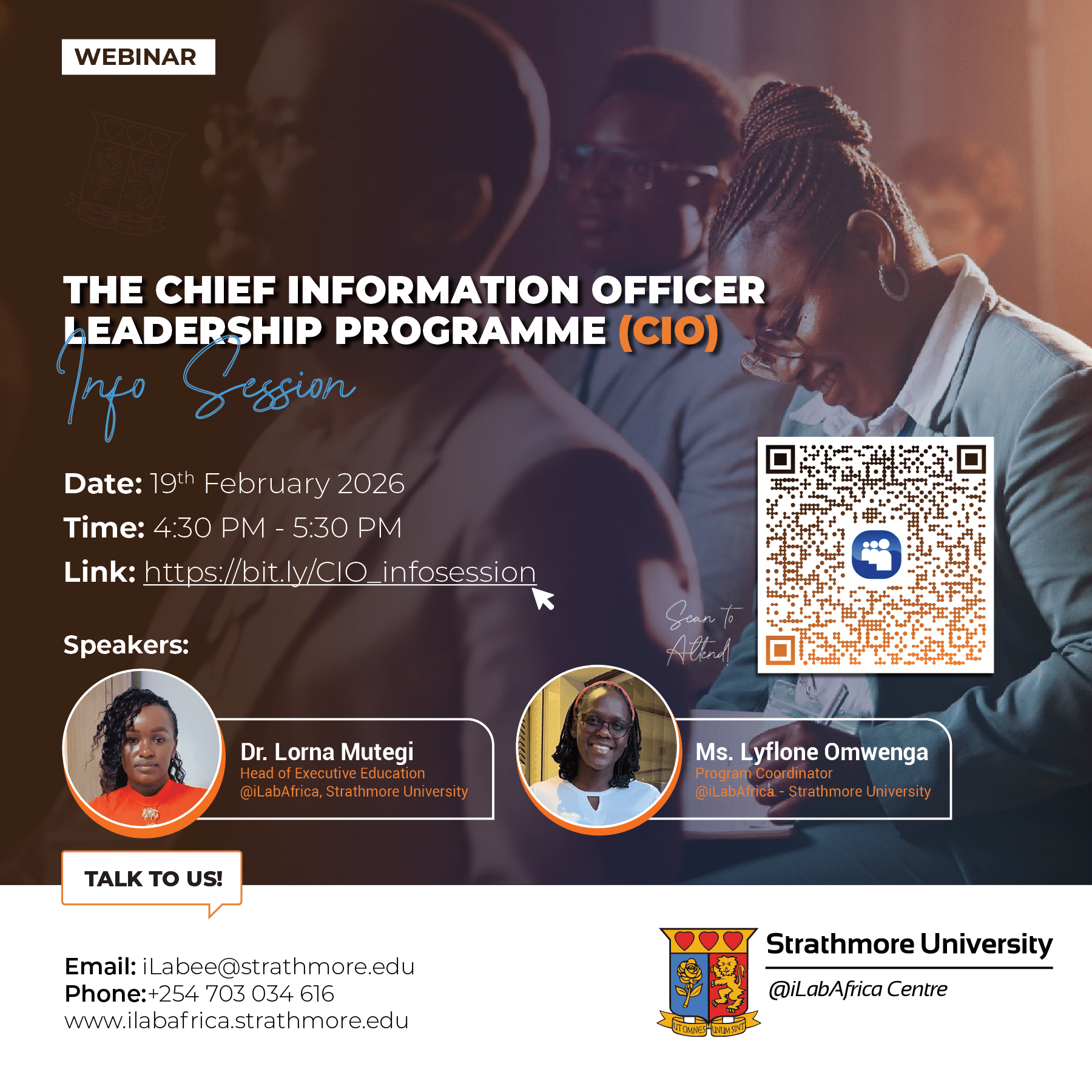 UPCOMING EVENTS | 202626th February 2026AI for SMEs WebinarRegister to Attend! 202626th February 2026Campaign Finance Watch Tool Hackathon 2026Register Now! 202619th February 2026The CIO Leadership Programme Info Session WebinarBook your Space! 202613th February 2026Strathmore Cybersecurity Clinic 2026Click to Register!